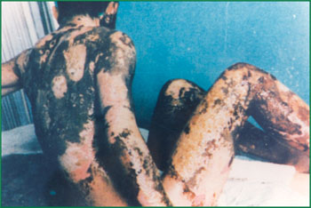 化學(xué)燒傷對(duì)皮膚的進(jìn)行性損傷使創(chuàng)面加深,同時(shí)因毒素吸收而造成全身臟器功能受損,病情危重。燒傷濕潤(rùn)暴露療法配合全身支持療法,適用于各類化學(xué)燒傷的治療并取得了顯著療效。