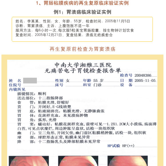 2. 胃腸衰老粘膜再生復(fù)原臨床驗(yàn)證實(shí)例