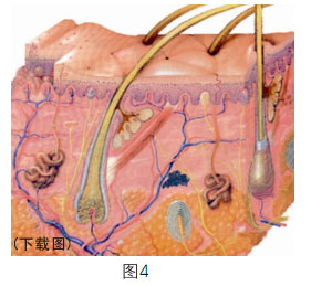 對于以上這些結(jié)論我們非常有把握,因為我們有20多年的皮膚再生臨床經(jīng)驗。美寶濕潤燒傷膏并不是一下子就研究出來的,從開始的創(chuàng)面濕潤到一般的創(chuàng)面愈合,接著到深二度減少疤痕愈合,再到深二度愈合無疤痕,而后又發(fā)展到三度燒傷能愈合有疤痕,再到三度燒傷愈合無疤痕,以后又進展到不僅僅是皮膚燒傷,而且傷及到肌肉骨骼,都能夠?qū)崿F(xiàn)皮膚再生,只要有骨頭在,就能使軟組織和皮膚再生出來 ,這么一步一步走過來的。所以,從皮膚的表面開始,一步一步到最后實現(xiàn),用一個細胞復(fù)制再生出所有的細胞。在這個過程當(dāng)中我們已經(jīng)把整個皮膚器官再生出來了,并形成了皮膚缺損如何再生的理論和技術(shù)。然后再思考正常的皮膚如何再生,正常皮膚的毛細血管有一些帶有半抗原性,或帶有特異排斥性質(zhì),一些物質(zhì)到毛細血管就被阻止了,無法進入,只能通過淋巴系統(tǒng)被轉(zhuǎn)回,因此沒有辦法通過毛細血管的吸收來營養(yǎng)細胞。皮膚和別的器官不一樣,有些帶類似抗原性質(zhì)的成分到達不了細胞,所以要結(jié)合外源性注入的方法,雖然外源性物質(zhì)導(dǎo)入量不大,但是都能夠被導(dǎo)入真皮層。(圖3)汗腺、皮脂腺、毛囊、毛發(fā)等實際上從胚胎時期就是由一個干細胞發(fā)育來的。表皮的基底細胞排得很整齊,看上去都是一個個的,實際上它們是連續(xù)的,皮膚表皮的上半部分都是靠基底細胞分化而來的?;准毎厦娓鲗涌梢远紱]有,但這層基底細胞必須存在,只要有這層細胞,皮膚的表面就會恢復(fù)得完好無損。醫(yī)學(xué)上常說的皮膚的生理性再生就是指表皮基底細胞層再生的概念,只要這層細胞在,就能把表皮外面各層都再生出來。表皮的組成層次由深層到表層主要是基底層、棘層、顆粒層,最上面是角質(zhì)層。