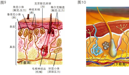 皮膚器官中的神經(jīng)組織主要是神經(jīng)纖維和各種神經(jīng)小體,具有接受刺激和傳導(dǎo)興奮的功能,是皮膚及皮膚附件活動的功能單位。