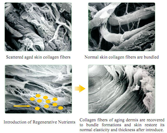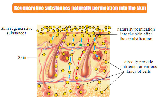 After the absorption of regenerative nutrients, the potential regenerative ability of connective somatic cells of hypodermis will be initiated to help achieve the regenerative renewal and repair of aging and aged skin cells, which eventually rejuvenation the skin cells to a younger and more vigorous state.