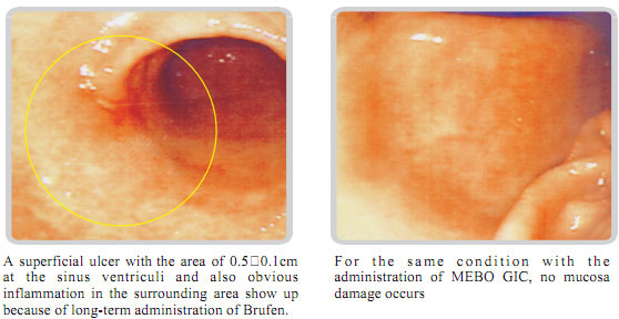 One of the main side effects of medication, especially the antirheumatic and non-steroid anti-inflammatory drug is the gastrointestinal disorder, which is mainly caused by the stimulus and damage of chemical drugs to the gastrointestinal mucosa. The regeneration and restoration technique of MEBO GIC can prevent and correct the gastrointestinal disorder caused by chemical drugs.
