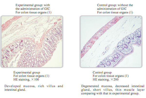 The average life of albino rats was 480 days. The experimental time was twice longer than that. The rats in the experimental group took MEBO GIC showed the vigorous state of the gastrointestinal mucosa, the intestinal gland tissues, and muscular layer with no aging or degeneration signs observed.