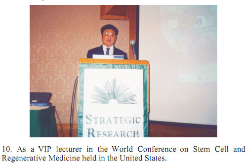 After KARGER published my first monograph book about clinical application of regenerative medicine, great attention of many scientists from the United States and other western countries was drawn.  Some scientists began to self-examine their past research work, and meanwhile tried to discard the old approach for ESC research to follow the way of transforming somatic cells into stem cells, for example, Japanese scientists reported an advance about somatic cells being transformed into analogous stem cells through re-programming in 2006.  Although there was actually no stem cell transformed successfully in their research, and the 'false' stem cells ---'resembling cancer cells' were produced, this indicated that they began to follow our research direction by transforming somatic cells into stem cells.  In 2007, scientists from Japan and the United States simultaneously applied this research result to human skin cell experiments, and obtained the same results. As a result, with lavish praise from some famous journals, they even asserted that they realized the transformation of stem cells from somatic cells, which set off an upsurge on transforming somatic cells into stem cells worldwide.  On the other hand, several embryo scientists, headed by Father of Dolly the Sheep declared they will abandon the ESC research and enter the above-mentioned field of somatic cells transforming into 'stem cells'.  We, as the first ones who achieved the induction of stem cells from somatic cells, are very appreciated of their change.