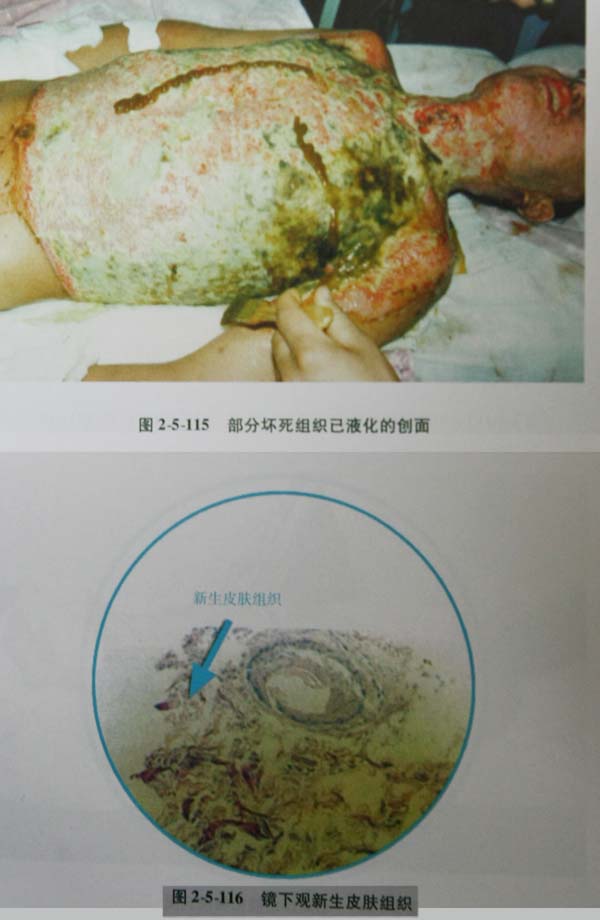 (4)應(yīng)在傷后20天內(nèi)徹底清除壞死組織使創(chuàng)面新鮮再植皮,消除創(chuàng)面。