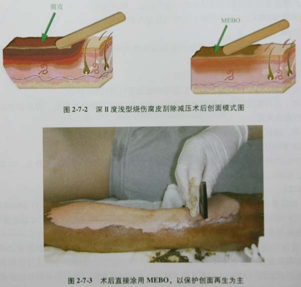 此療法適于深Ⅱ度深型燒傷創(chuàng)面初期治療。目的是痂皮切劃、劃開減壓,殘存細(xì)胞受壓緩解。