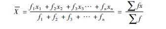 X為平均數(shù),x為變量數(shù),n為變量值的個數(shù),∑表示總和的符號,∑x為各變量的總和。