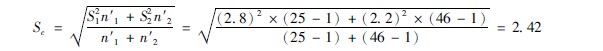n=每組例數(shù),t005=表中查出的標(biāo)準(zhǔn)值,s=合并標(biāo)準(zhǔn)差,x1-x2=兩組均數(shù)差。