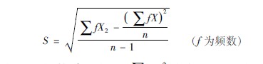 式中∑fX為各組段X與本組段頻數(shù)乘積之和,∑fΧ2為各組段fx與本組段X乘積之和。