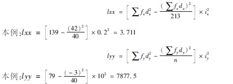 式中Ixx=∑(x-x)(y-y)(離均差積和)
