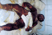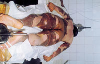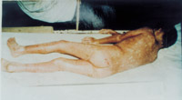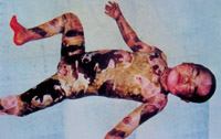 病例六:患兒7歲,石灰燒傷90%TBSA 這是治療前的表現(xiàn)