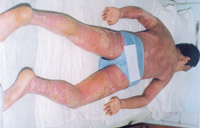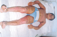 病例八:患者18歲,液化汽火焰燒傷,95%TBSA,這是治療前的表現(xiàn) 1.前面