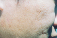 8. 淺Ⅲ度創(chuàng)面(右面部)自行愈合后3年,皮膚結(jié)構(gòu)基本正常,毛發(fā)生長,汗腺分泌