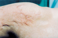5.深Ⅱ度、淺Ⅲ度混合度創(chuàng)面(左上臂內(nèi)側(cè))自行愈合后3年,皮膚結(jié)構(gòu)大部分正常