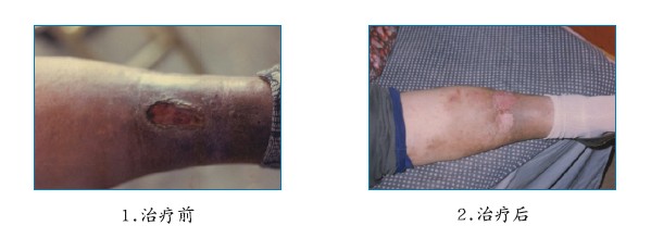 女性患者,56歲,糖尿病史多年,因靜脈曲張小腿潰瘍收治河北省武安燒傷創(chuàng)瘍科技醫(yī)療分中心,住院后給予MEBO包扎治療。每日換藥1次~2次,60天痊愈出院。