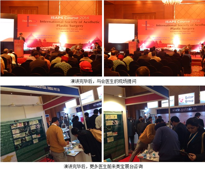 2014年1月16日-19日,2014年國(guó)際美容整形會(huì)議在印度賈普爾舉辦,會(huì)議由泰國(guó)整形外科醫(yī)生協(xié)會(huì)、印度美容整形外科醫(yī)生協(xié)會(huì)及印度整形外科醫(yī)生協(xié)會(huì)主辦。會(huì)議吸引了來自美國(guó)、希臘、德國(guó)、瑞士、土耳其、泰國(guó)、日本等國(guó)家和地區(qū)的二十多名國(guó)際專家以及近300名來自印度國(guó)內(nèi)的整形外科醫(yī)生參會(huì)。大會(huì)正式日程持續(xù)三天,主要分成皮膚還童、眶周還童、鼻部整形、乳房整形、塑形、植發(fā)、去脂等主題進(jìn)行。