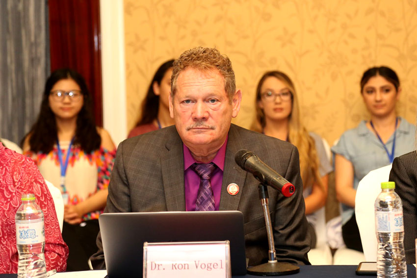 徐榮祥徐健康與公眾服務學院院長Ronald Vogel在儀式上發(fā)表講話,他對徐榮祥基金會支持發(fā)起的此次難得的學習機會深表感謝。他相信這樣的機會對于來到中國的這批特別甄選的護理學院和社工學院的優(yōu)秀學生乃至整個院系都是很好的歷練機會。他說,我們現(xiàn)在在中國又有了一個大家庭,我們所有的人都因為徐榮祥教授的價值觀和信仰而更好的聯(lián)結在了一起。我們專注于治療,滿足人們的各種需求,并一起努力消除人類的痛苦。