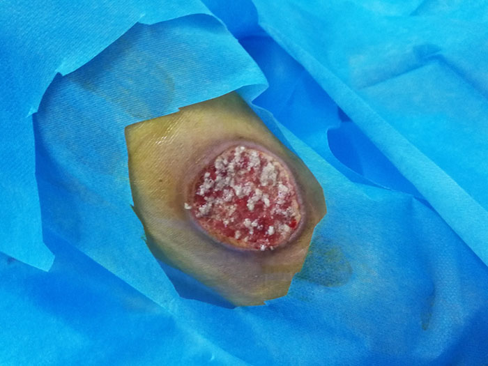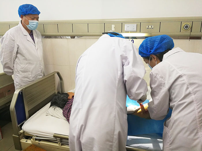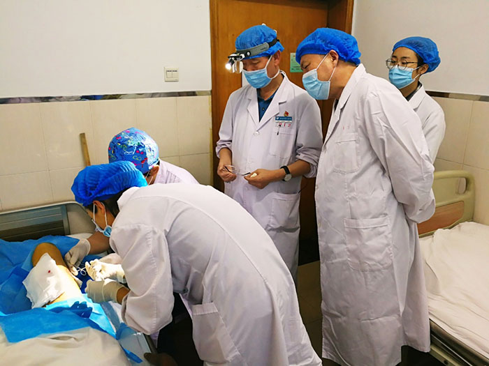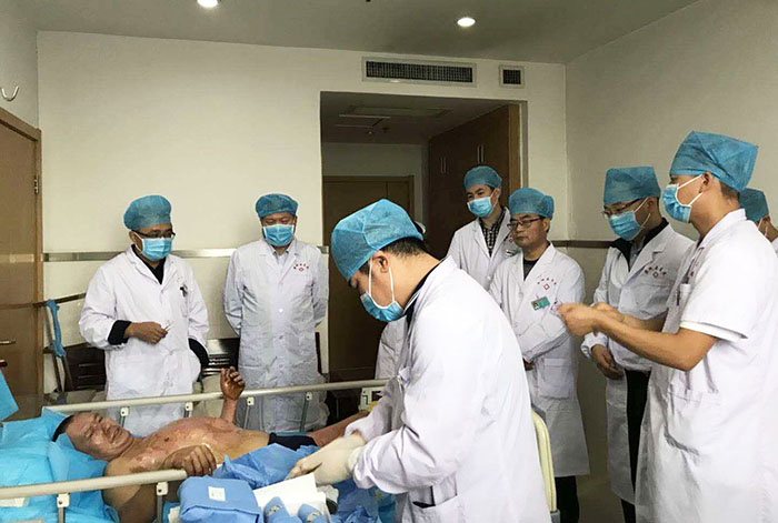 楊智斌總裁此行還會見了西安交通大學(xué)附屬西安第九醫(yī)院燒傷科肖厚安主任,該院作為陜西中西醫(yī)結(jié)合學(xué)會燒傷專業(yè)委員會主委單位,在再生醫(yī)療技術(shù)的臨床應(yīng)用中取得了一定成果,特別是在再生療法配合自體微粒皮種植技術(shù)治療面積較大的皮瓣、組織缺損創(chuàng)面的應(yīng)用方面,解決了傳統(tǒng)燒傷、創(chuàng)面治療缺少皮源這一難題。在肖厚安主任的陪同下,楊智斌總裁還現(xiàn)場觀摩了微粒皮種植術(shù)臨床應(yīng)用,認(rèn)真聽取了該科室多年來應(yīng)用再生醫(yī)療技術(shù)治療的病例總結(jié)。