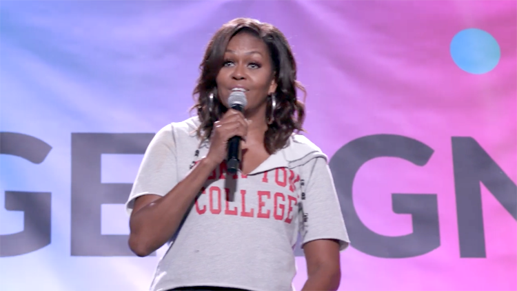 米歇爾· 奧巴馬在加大洛杉磯分校舉行的大學(xué)定校日活動激勵中學(xué)生上大學(xué)