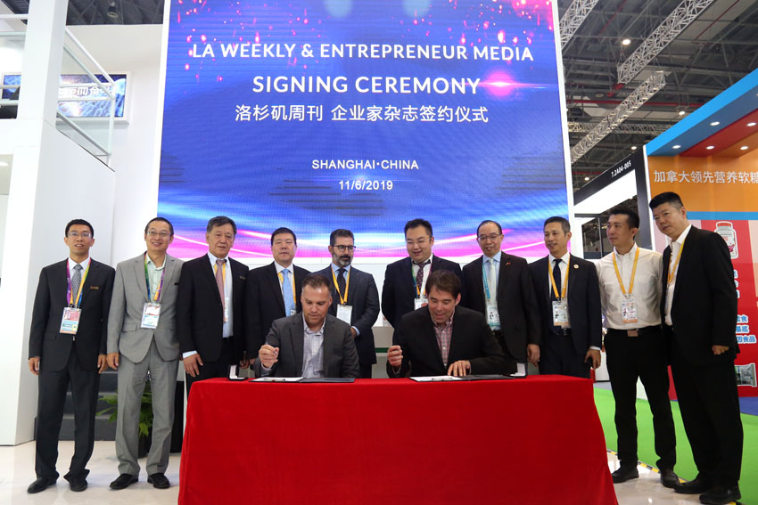 就在今天,美寶見證并迎來了進博會首個簽約。上午10點30分,美寶集團戰(zhàn)略合作伙伴LA Weekly(《洛杉磯周刊》)與Entrepreneur Media(美國《企業(yè)家》)在美寶集團展臺簽約,雙方將建立新的伙伴關系,并在全球范圍內(nèi)開展創(chuàng)造性的系列活動。美寶集團董事局主席徐鵬、美寶集團總裁楊智斌,美寶集團副總裁劉鋼、商慶新,美寶美國環(huán)球集團COO盧偉熙及加州部分代表在現(xiàn)場見證了此次簽約,并將在雙方的伙伴關系中起到更好的鏈接與深化作用。
