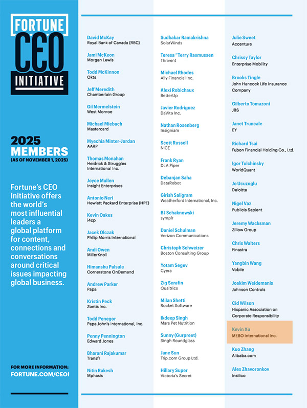 2025年12月,《財富》雜志跨年期刊公布了財富CEO倡議2025年名單,美寶集團(tuán)董事局主席、前APEC籌委會主席徐鵬再度入列該名單。