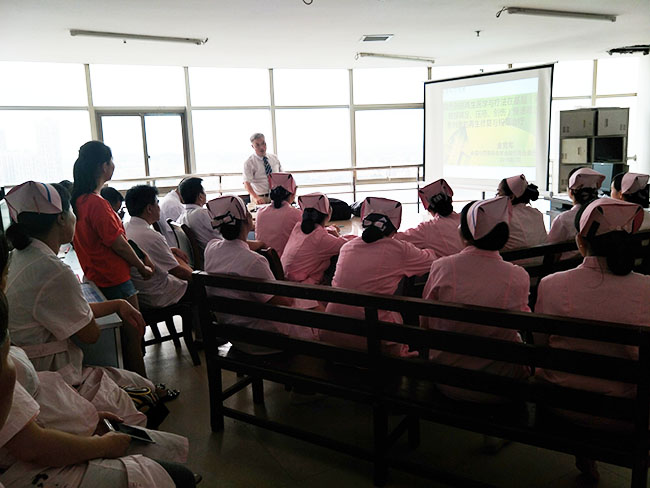 7月9日,燒傷創(chuàng)瘍再生醫(yī)療專家、中國中西醫(yī)結(jié)合學(xué)會(huì)燒傷專業(yè)委員會(huì)常務(wù)委員王洪生受湛江市第二人民醫(yī)院邀請,對全院護(hù)士長及壓瘡護(hù)理小組進(jìn)行再生醫(yī)療技術(shù)對糖尿病足潰瘍及四級壓瘡治療培訓(xùn),進(jìn)一步提升該院再生醫(yī)療技術(shù)在糖尿病足領(lǐng)域的應(yīng)用規(guī)范;同時(shí)應(yīng)湛江市第四人民醫(yī)院老年科邀請,對全科室醫(yī)生,護(hù)士26人就再生醫(yī)療技術(shù)在糖尿病足潰瘍、四期壓瘡創(chuàng)面處理要點(diǎn)進(jìn)行專題臨床技術(shù)培訓(xùn),并應(yīng)邀為該科收治1例Wagner4級糖尿病足多發(fā)潰瘍并感染的患者進(jìn)行了會(huì)診。