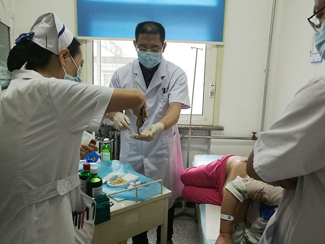 7月16日上午,應(yīng)天津市人民醫(yī)院邀請,燒傷創(chuàng)瘍再生醫(yī)療專家、中國中西醫(yī)結(jié)合學(xué)會(huì)燒傷專業(yè)委員會(huì)常務(wù)委員王洪生到血管外科會(huì)診幾例難愈合創(chuàng)面患者,現(xiàn)場示范并指導(dǎo)醫(yī)生使用再生技術(shù)換藥。天津市人民醫(yī)院血管外科受劉主任表示,希望今后雙方加強(qiáng)合作,讓更多患者受益!