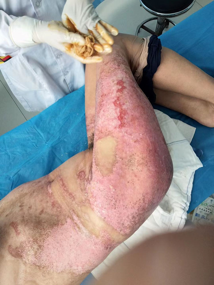 2022年10月31日-11月1日,中國中西醫(yī)結(jié)合學會燒傷專業(yè)委員會醫(yī)療部張強應石首市人民醫(yī)院外二科李主任邀請,用再生醫(yī)療技術(shù)會診一例燒傷病人,患者經(jīng)過兩次削痂清創(chuàng)換藥,創(chuàng)面情況良好,恢復狀況得到了院方科室的認可,患者及家屬對張強教授的會診表示感謝!