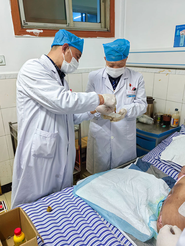 2024年3月18日,應武漢市第五醫(yī)院主任創(chuàng)面修復與血管外科楊銳主任邀請,《中國燒傷創(chuàng)瘍雜志》編委、燒傷創(chuàng)瘍再生醫(yī)療技術臨床專家張強,來到病房現(xiàn)場教學查房、會診了多例糖尿病慢性潰瘍患者,張主任仔細查看每個患者創(chuàng)面、深入了解病人全身狀況及治療情況后,同楊主任及管床醫(yī)師一起討論病情,并演示再生醫(yī)療技術臨床規(guī)范換藥流程,根據(jù)不同病情制定不同治療方案。得到醫(yī)護人員與患者家屬的高度稱贊!會診后又同楊主任就科室建設進行了深入探討。楊主任對張主任會診毫無保留的分享表示衷心的感謝!他表示以后將進一步發(fā)展和壯大創(chuàng)面修復科室建設,讓患者受益!