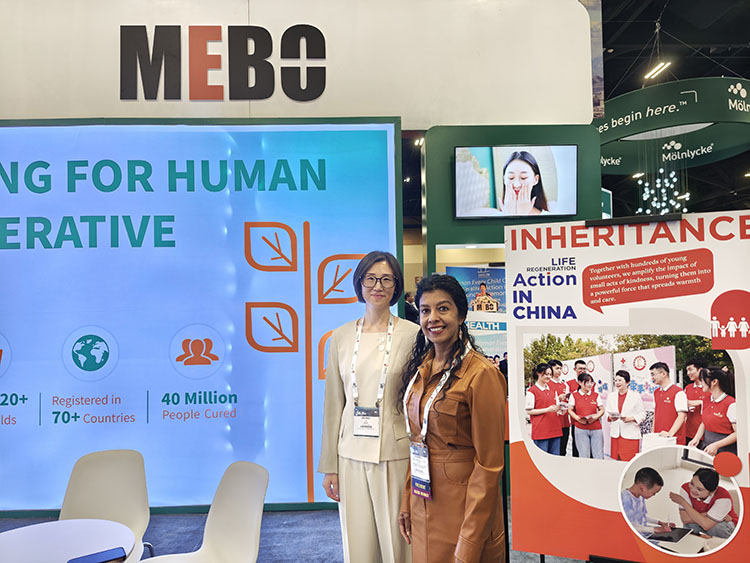 除了產(chǎn)品的展示,此次大會上還特別開啟了“生命再生行動”全球巡展北美首展,引發(fā)與會者的廣泛關(guān)注。該巡展通過一系列圖文并茂的海報,系統(tǒng)展示了十年中“生命再生行動”在技術(shù)培訓(xùn)、災(zāi)難救援與關(guān)愛婦女兒童等方面開展的多項(xiàng)行動。本屆主席 Sharmila Dissanaike特地來到展臺了解此次巡展,并對美寶國際致力于提升全球生命質(zhì)量的企業(yè)社會責(zé)任給予高度評價。值得提及的是,一位來自秘魯?shù)尼t(yī)生看到在秘魯利馬開展的燒傷兒童救治行動激動不已,感謝此次行動對于其國家的幫助。另一位黎巴嫩醫(yī)生看到援助行動助力貝魯特港口爆炸后的醫(yī)院重建,十分感動。此次巡展也成為本屆大會中獨(dú)有的以全球視角展示企業(yè)公益實(shí)踐的項(xiàng)目。