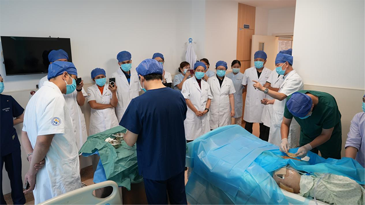 25日上午,代表團(tuán)再次前往病區(qū),觀摩了一例壓瘡患者的微粒皮種植操作。觀摩結(jié)束后,醫(yī)生們紛紛表示未來希望能夠有機(jī)會(huì)將微粒皮種植技術(shù)應(yīng)用到當(dāng)?shù)氐幕颊呔戎沃?。在隨后的學(xué)術(shù)分享環(huán)節(jié),代表團(tuán)也各自展示了其在臨床工作中的創(chuàng)面治療案例,現(xiàn)場互動(dòng)積極,學(xué)術(shù)氛圍熱烈。
