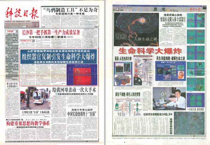 2000年9月,國家科學(xué)技術(shù)部用英文向國際發(fā)布(No.234 Stem Cell Grows into Skin);