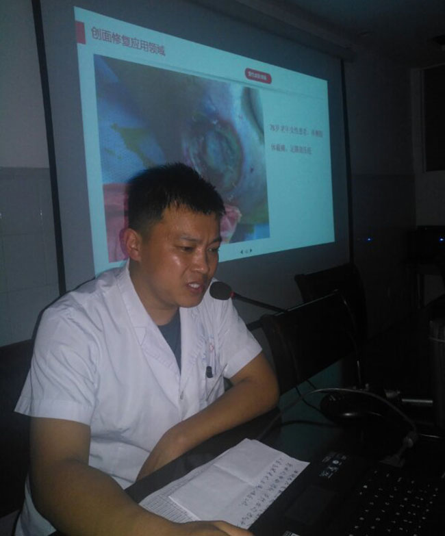 會(huì)上,宋小紅主任介紹了再生醫(yī)療技術(shù)的發(fā)展和臨床治療運(yùn)用意義及其廣闊醫(yī)療市場(chǎng)前景。李志剛主任對(duì)我院創(chuàng)面修復(fù)科張敏楠主任近半年來在"再生醫(yī)療技術(shù)"領(lǐng)域的學(xué)習(xí)探索和實(shí)踐成果給予了高度的肯定,李主任表示青年骨干醫(yī)師是"再生醫(yī)療技術(shù)"發(fā)展的中堅(jiān)力量,燒傷治療與康復(fù)醫(yī)學(xué)會(huì)將會(huì)長期堅(jiān)持對(duì)他們的深度提攜和幫扶。接下來會(huì)議進(jìn)入正題,由張敏楠主任圍繞"再生醫(yī)療技術(shù)在燒傷、慢性皮膚潰瘍、創(chuàng)傷手術(shù)創(chuàng)面難愈合及N+1領(lǐng)域的應(yīng)用"進(jìn)行實(shí)踐成果匯報(bào)與分享。