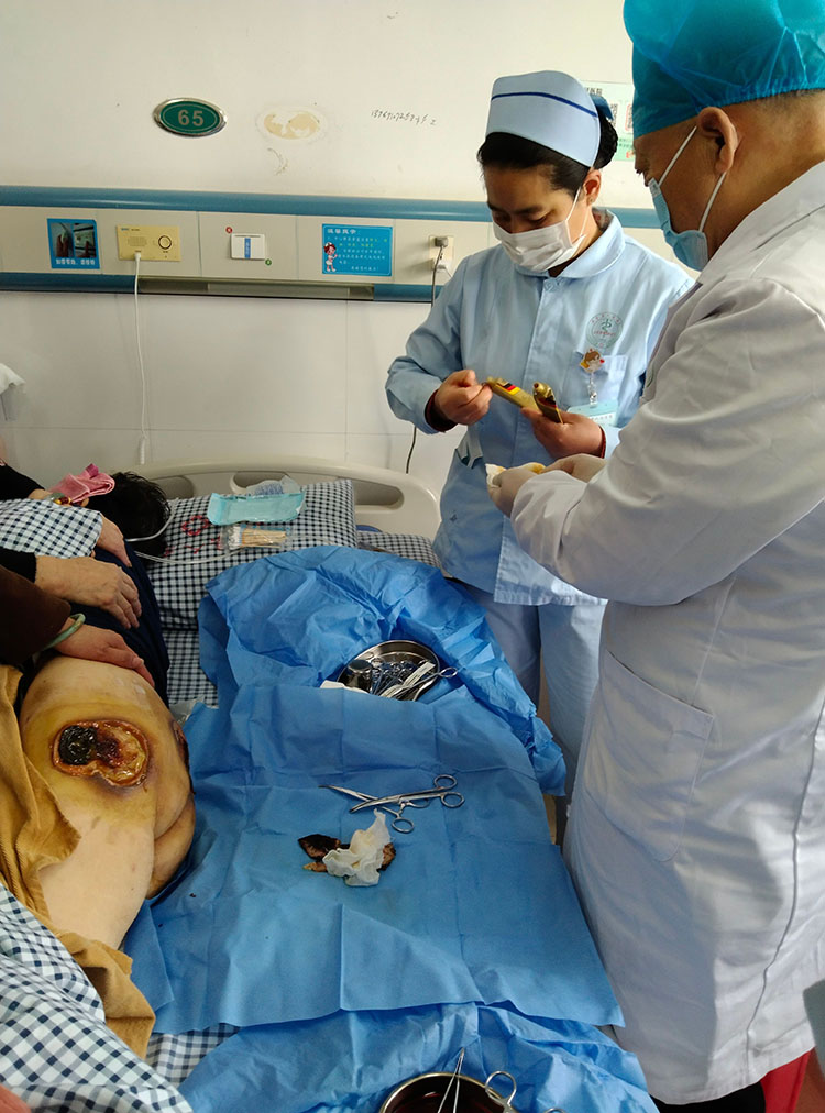 2023年3月2日,應(yīng)張家港第三人民醫(yī)院邀請,再生醫(yī)學(xué)知名專家、《中國燒傷創(chuàng)瘍雜志》常務(wù)編委趙瑞慶主任前往該院會診了二例褥瘡患者,并親自演示規(guī)范操作流程,事后又針對性地講解了各類褥瘡的再生枝術(shù)治療方法,受到了當(dāng)?shù)蒯t(yī)務(wù)人員的稱贊。
