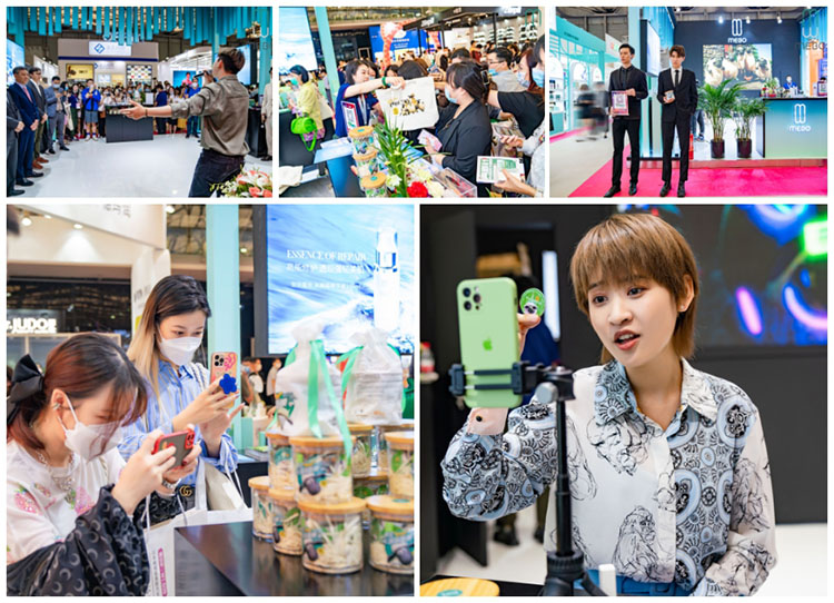 美寶展臺現(xiàn)場活動不斷,精彩紛呈,人流匯聚。不僅ALL IN男團(tuán)成員、華語樂壇新生代實(shí)力派歌手傾情演唱,將氣氛拉到高潮;更有抖音紅人應(yīng)邀來到,和大家現(xiàn)場分享護(hù)膚秘籍,并在抖音賬號直播間送出多重福利,引爆流量。