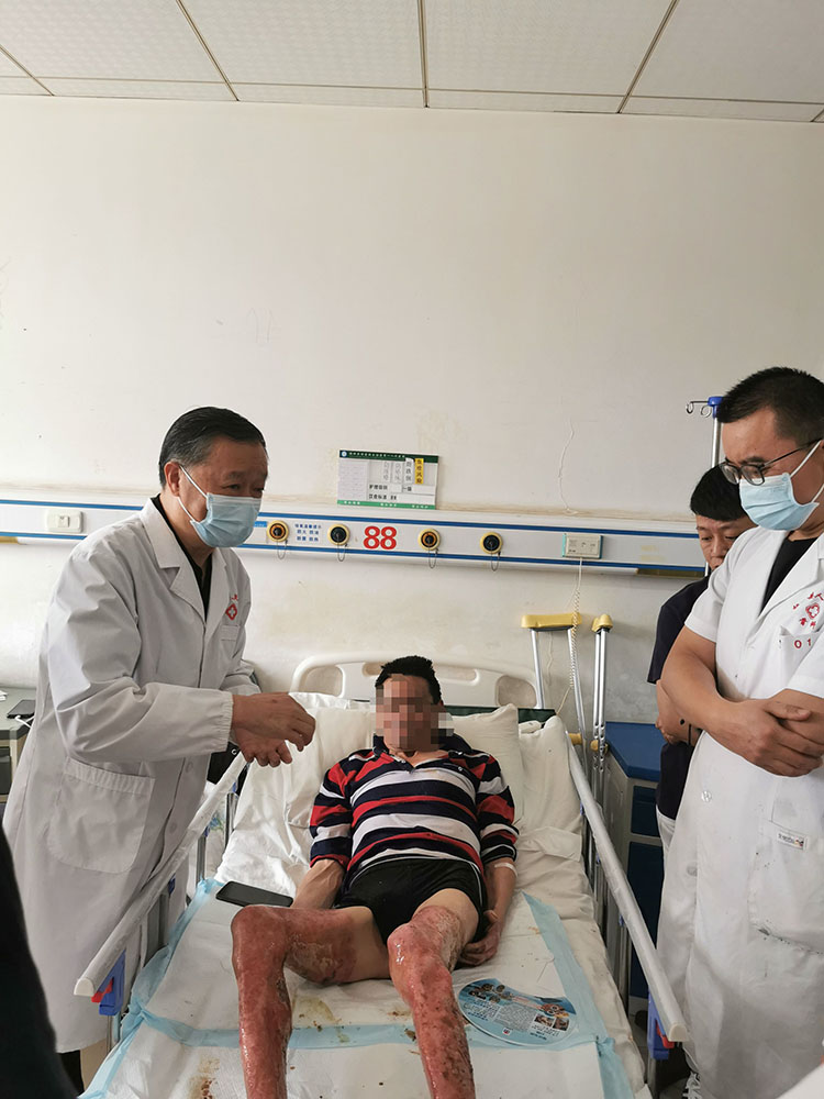 2023年7月14日,《中國燒傷創(chuàng)瘍雜志》編委、燒傷創(chuàng)瘍再生醫(yī)療技術(shù)臨床專家張強應(yīng)邀走訪湖北省荊門市中醫(yī)醫(yī)院燒傷整形科,會診一例大面積燒傷患者,協(xié)調(diào)廖醫(yī)生一起給患者進(jìn)行了換藥治療,張教授就患者創(chuàng)面恢復(fù)情況跟封主任進(jìn)行了交流,提出了后續(xù)防疤治療方案,得到患者和臨床醫(yī)生高度認(rèn)可!