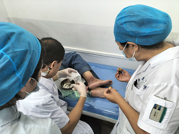 南通三院孫記燕主任到海安市中醫(yī)院會診難愈合創(chuàng)面患者