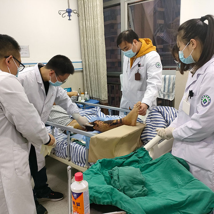 3月14日,九龍坡區(qū)第二人民醫(yī)院張孝平主任受邀來到江津福城醫(yī)院,會診一例車禍傷病人,并同科室主任及醫(yī)生一起給病人換藥,獲得大家一致好評,隨后還會診了一例內(nèi)科壓瘡病人,指導(dǎo)了如何換藥清創(chuàng)等。