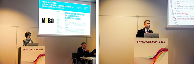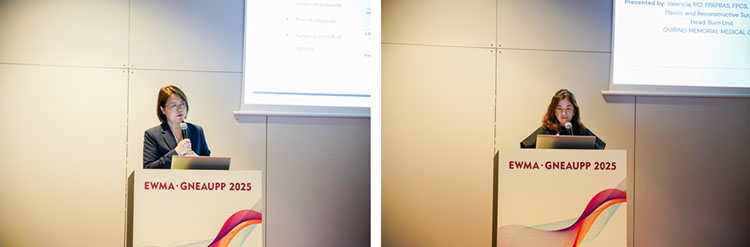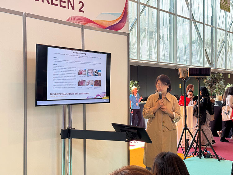 除展臺的展示外,再生醫(yī)療技術更是在會議中掀起一次次學術浪潮。大會首日下午,題為“重塑創(chuàng)面治療:從臨床實踐到技術創(chuàng)新”的再生醫(yī)療技術研討會順利召開。作為推動克林頓全球倡議(CGI)——“歐洲修復計劃:賦能歐洲再生醫(yī)療網(wǎng)絡構建”的又一關鍵活動,研討會圍繞再生醫(yī)療技術在急慢性創(chuàng)面中的創(chuàng)新應用展開討論。來自沙特 Sulaiman Al Habib醫(yī)療集團外科的Ziad Dalloul首先分享了馬喬林潰瘍的臨床管理策略,深入探討了再生醫(yī)療技術在復雜創(chuàng)面中的應用及優(yōu)勢。隨后,西安市第九醫(yī)院燒傷整形科周小茜帶來了應用自創(chuàng)微粒皮漿種植結合再生醫(yī)療技術治療慢性創(chuàng)面的演講,充分展示了該技術在促進慢性創(chuàng)面愈合中的優(yōu)勢。最后,來自菲律賓Quirino Memorial醫(yī)療中心燒傷科的Nikki Valencia分享了一項最新的系統(tǒng)回顧,全面證實了再生醫(yī)療技術在燒傷治療中的綜合療效、安全性、疼痛緩解及感染預防方面的顯著療效。