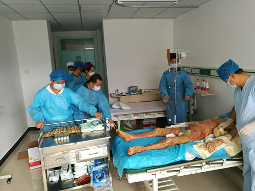 8月23日,三例重患轉(zhuǎn)至牡丹江市第一人民醫(yī)救治,盡管患者前期治療走了10天彎路,大大增加了大面積深度燒傷的死亡風險,而且患者已經(jīng)無力承擔更多費用,但牡丹江市第一人醫(yī)院還是一致作出了“救人要緊,救人第一”的決定,迅速組建了救治小組。