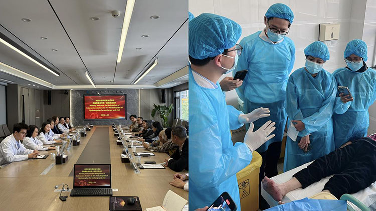 23日,代表團抵達北京市豐臺區(qū)中醫(yī)醫(yī)院,醫(yī)院燒傷整形與創(chuàng)面修復(fù)科組織了內(nèi)容豐富的參觀與學(xué)術(shù)交流活動。上午,代表團參觀了病區(qū)與門診,并觀摩了急慢性創(chuàng)面的再生醫(yī)療技術(shù)規(guī)范換藥操作。隨后,醫(yī)院醫(yī)護人員圍繞糖尿病足潰瘍、大面積燒傷、褥瘡等臨床案例進行了詳細講解。來自印尼的兩位醫(yī)生也分享了該技術(shù)在印尼的臨床應(yīng)用經(jīng)驗,引發(fā)了現(xiàn)場的積極討論,拓寬了雙方在創(chuàng)面管理領(lǐng)域的理解與交流。