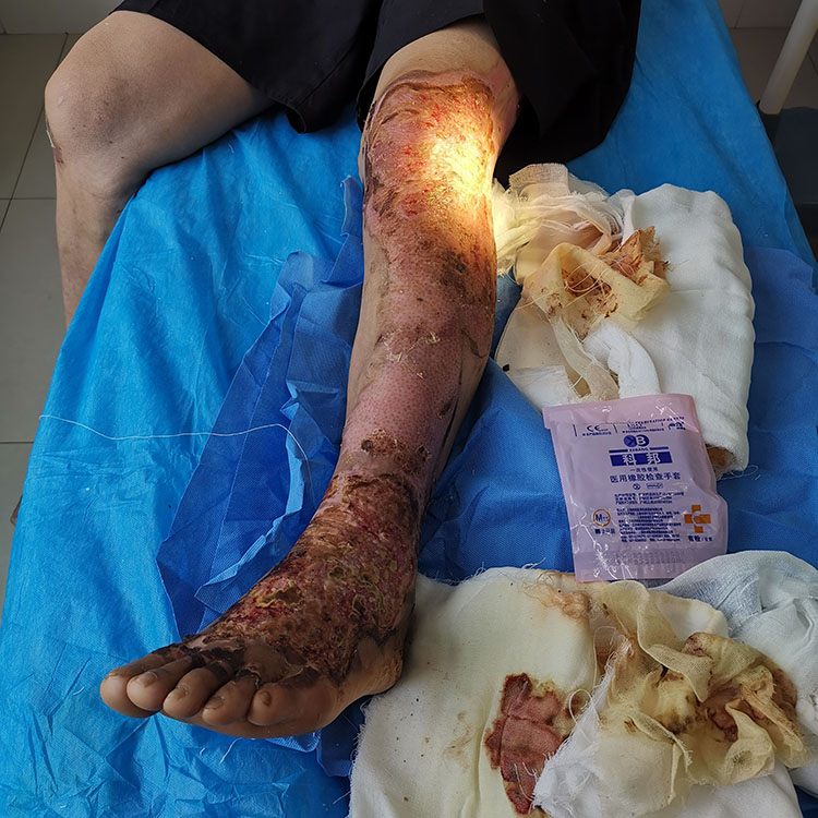 2023年3月28日,應(yīng)蕪湖市第一人民醫(yī)院燒傷科梁其國(guó)主任邀請(qǐng),中國(guó)中西醫(yī)結(jié)合學(xué)會(huì)燒傷專(zhuān)業(yè)委員會(huì)醫(yī)療部張強(qiáng)主任會(huì)診幾例慢創(chuàng)病人,張主任邊換藥邊講解換藥技巧及要點(diǎn),后期還給科室醫(yī)生培訓(xùn)了換藥流程,得到大家的高度認(rèn)可!
