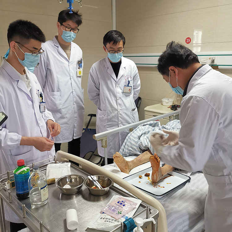 3月27日,應(yīng)河北省張家口市中醫(yī)院邀請(qǐng),再生醫(yī)學(xué)知名專(zhuān)家、《中國(guó)燒傷創(chuàng)瘍雜志》常務(wù)編委趙瑞慶主任,來(lái)到該院會(huì)診了四例創(chuàng)面患者,對(duì)糖尿病足潰瘍、右足感染性潰瘍,伴骨髓炎、下肢靜脈性潰瘍、足底感染竇道等慢性難愈合創(chuàng)面親自指導(dǎo)換藥,并進(jìn)行了規(guī)范化示范操作。同時(shí)給科室醫(yī)護(hù)人員進(jìn)行了以再生醫(yī)療技術(shù)為主治療難愈合創(chuàng)面的學(xué)術(shù)講座,得到了患者及科室人員的高度贊揚(yáng)和感謝!