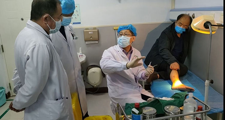 2月13日, 北京榮祥再生醫(yī)學(xué)研究所副所長(zhǎng)、中國(guó)中西醫(yī)結(jié)合學(xué)會(huì)燒傷專業(yè)委員會(huì)常務(wù)委員、《中國(guó)燒傷創(chuàng)瘍雜志》副總編輯、應(yīng)用燒傷創(chuàng)瘍?cè)偕t(yī)療技術(shù)治療糖尿病足領(lǐng)域?qū)<彝鹾樯魅问苎巴綎|省淄博市高青縣人民醫(yī)院,與創(chuàng)傷中心劉主任及其團(tuán)隊(duì)開展再生醫(yī)療技術(shù)在壓力性損傷的療效機(jī)理與處理要點(diǎn)專題講座,并結(jié)合住院病例進(jìn)行了現(xiàn)場(chǎng)教學(xué),受到大家一致好評(píng)。