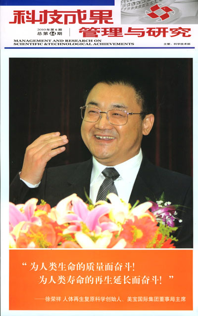 1988年,徐榮祥發(fā)明創(chuàng)立的“燒傷皮膚再生醫(yī)療技術”被確定為國家級重大科技成果;1992年,他從燒傷臨床研究進入細胞學研究領域.進行破解皮膚再生的機制研究;1997年破解了皮膚原位再生之謎,1999年,發(fā)表了皮膚角蛋白19型干細胞原位再生的機制,成為世界上第一個在燒傷深度創(chuàng)面上培植出皮膚角蛋白19型干細胞的報道;2000年出版著作,公布了皮膚組織細胞可轉化為干細胞再生器官的臨床結果和生命規(guī)律的秘密;2001年,宣布了胃腸組織細胞克隆胃腸器官獲得成功;2002年8月,宣布“破解人體生命之謎”,組織器官原位再生復制技術獲得巨大反響;2003年6月參加在美國華盛頓舉行的第一屆全球干細胞年會,并作書面報告;2004年1月,英文版再生醫(yī)學專著《燒傷再生醫(yī)學和治療》在瑞士KARGER出版社出版;2005年至2006年間,獲得美國體外培養(yǎng)組織細胞變干細胞并形成組織器官、原位再生組織器官、相關再生醫(yī)學的多項專利權;2007年8月,在北京發(fā)布了206個組織器官克隆和腫瘤細胞轉變研究承諾兌現(xiàn)的研究報告。2008年1月,公布全營養(yǎng)再生復原抗癌計劃;2009 年1月,公布再生營養(yǎng)食療抗癌的再生抗癌理論、再生抗癌機理、癌癥的發(fā)病機制、癌癥的發(fā)病原因的研究成果。迄今,徐榮祥已經(jīng)獲得人體再生復原科學領域的美國、中國、日本、歐洲專利局的20項專利授權。