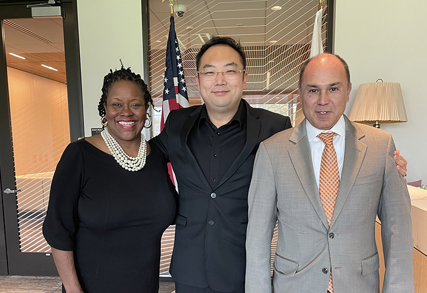 近日,美寶集團(tuán)董事局主席徐鵬與加州州立大學(xué)洛杉磯分校(洛杉磯州大)新任校長Berenecea Johnson Eanes博士及副校長Robert Avalos會晤,就大學(xué)合作等具體事宜展開進(jìn)一步討論。Berenecea Johnson Eanes博士是加州州立大學(xué)洛杉磯分校新任校長,也是該校首位女校長。此前,徐鵬曾應(yīng)邀訪問該校,與時任代校長 Leroy Morishita等會晤。
