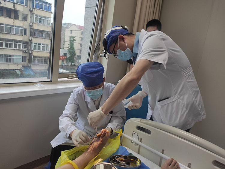 趙瑞慶教授受邀到張家港港成康復醫(yī)院創(chuàng)面修復科會診治療