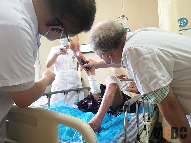 8月26日,應(yīng)岳陽市中醫(yī)醫(yī)院燒傷創(chuàng)瘍科余正華主任邀請,北京榮祥再生醫(yī)學(xué)研究所副所長、《中國燒傷創(chuàng)瘍雜志》編委金黨軍來到科室會診一高齡燒傷患者,并討論微粒皮種植方案。岳陽市中醫(yī)醫(yī)院作為湘北地區(qū)最早使用再生醫(yī)療技術(shù)的基地醫(yī)院,多年來治愈了大量燒傷及慢創(chuàng)患者。
