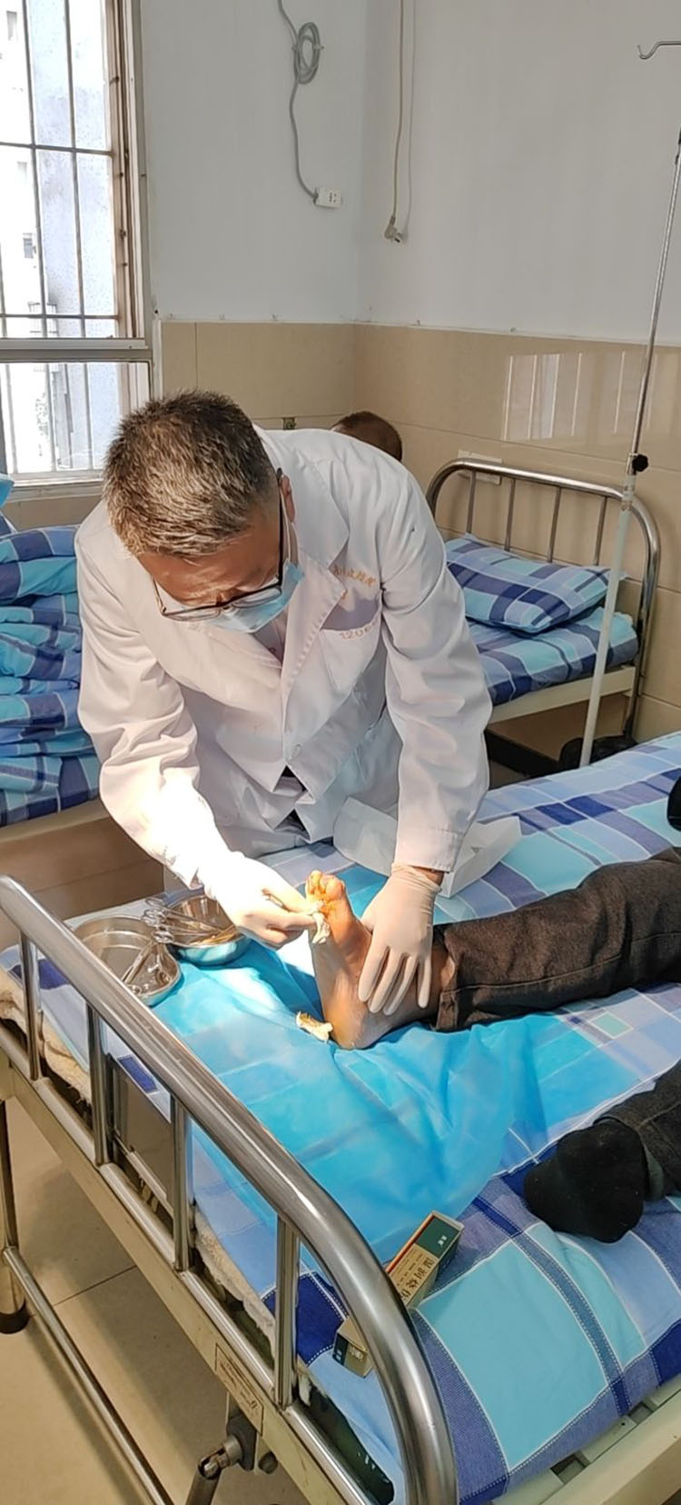 2023年4月6日,享受國務院特殊津貼專家、中國中西醫(yī)結(jié)合燒傷專業(yè)委員會顧問、中國研究型醫(yī)院學會創(chuàng)面防治與損傷組織修復專業(yè)委員會委員、中國中西醫(yī)結(jié)合學會再生醫(yī)療技術(shù)委員會創(chuàng)瘍學組首席專家、《中國燒傷創(chuàng)瘍雜志》常務編委、成都市郫都區(qū)人民醫(yī)院燒傷創(chuàng)瘍科學術(shù)帶頭人付子俊教授,重醫(yī)附一院燒傷整形科張恒術(shù)教授,向英護士長等,受重慶市合川區(qū)人民醫(yī)院邀請參與義診、教學查房及學術(shù)講座活動。學術(shù)會上付教授以《再生醫(yī)療技術(shù)在糖尿病足的運用》為題,張教授以《三點式微創(chuàng)重瞳術(shù)》為題,向護士長以《再生醫(yī)療技術(shù)創(chuàng)面要點》為題,生動形象的展示了再生醫(yī)療技術(shù)在糖尿病足的臨床應用,以及再生醫(yī)療技術(shù)的規(guī)范使用方法,并且展示了微創(chuàng)重瞳術(shù)的技術(shù)要點。會后大家進行了熱烈的討論,付教授,張教授,向護士長,對于大家的疑問進行了一一講解。本次活動對于再生醫(yī)療技術(shù)下基層起到了非常好的效果,同時也對重慶市合川區(qū)地區(qū)的燒傷瘡瘍治療起到了積極作用。