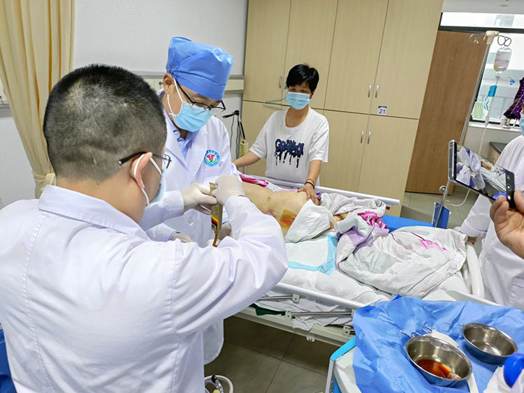 2023年4月8日,應南通市通州區(qū)第三人民醫(yī)院之邀,再生醫(yī)學知名專家、《中國燒傷創(chuàng)瘍雜志》常務編委趙瑞慶主任在該院會診了2例患者(下肢骨折內(nèi)固定術(shù)后皮膚感染1例、左手背皮膚外傷組織缺損1例),并針對性地對科室骨干進行了“再生技術(shù)治療急慢性創(chuàng)面修復”的培訓,使大家在開拓視野的同時感受到理論與臨床實踐相結(jié)合的益處,得到醫(yī)護人員的一致好評!